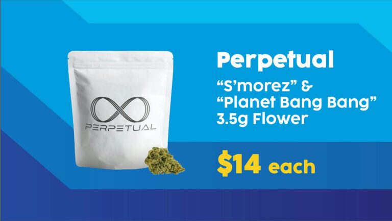 $14 each for Perpetual Smorez #5 or Planet Bang Bang 3.5g Flower!