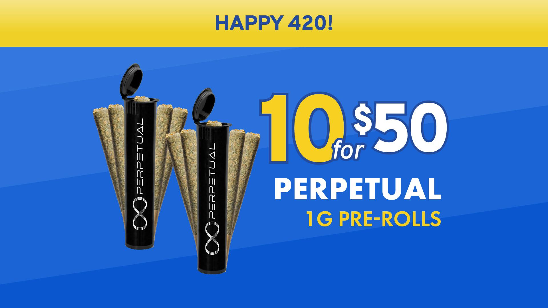Mix and match 10 for $50 Perpetual 1g Pre-Rolls! (Does not stack with other discounts)