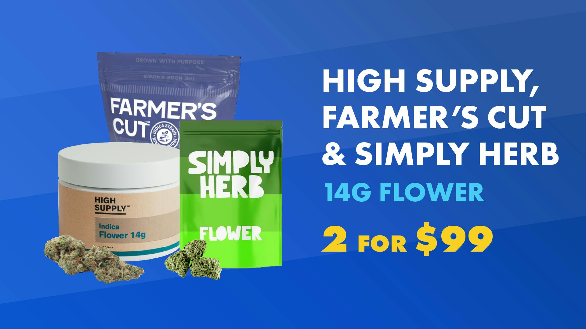 Home / Specials / 2 for $99 High Supply, Simply Herb & Farmer’s Cut 14g Flower!