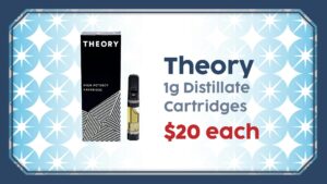 Home / Specials / $20 Theory Wellness 1g Distillate Cartridges!