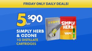 5 for $90 Simply Herb & Ozone 1g Distillate Cartridges!