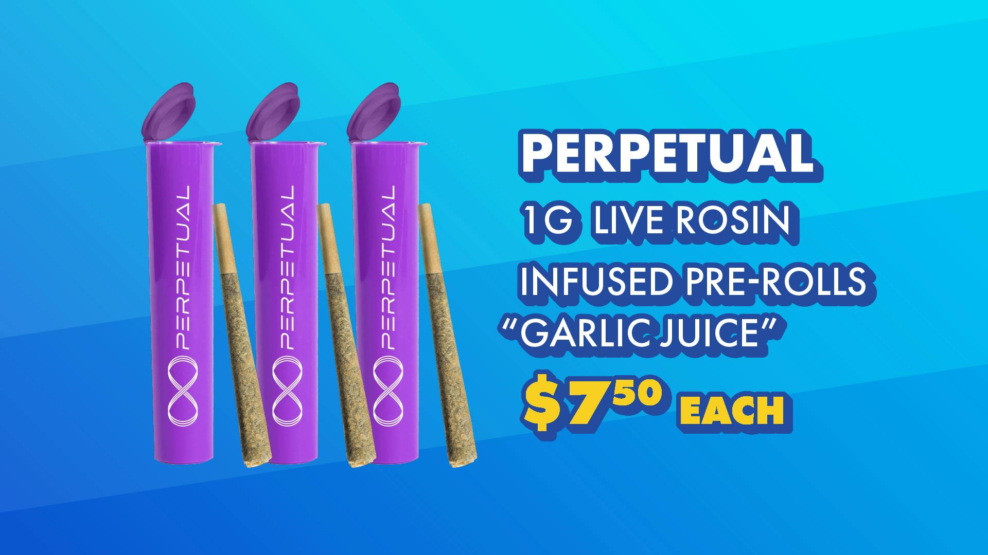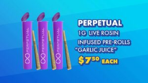 Home / Specials / $7.50 Perpetual Garlic Juice Live Rosin Infused Pre-Roll